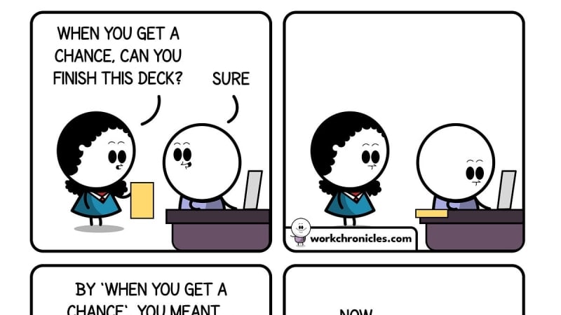 A comic illustrating the common workplace frustration when urgent requests disrupt carefully planned work priorities, forcing developers to switch from prioritized task management to first-in-first-out processing.