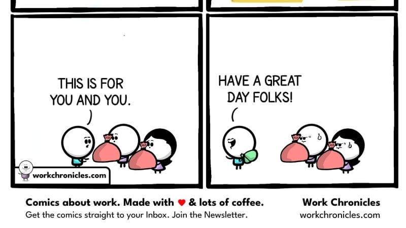 A comic strip from Work Chronicles about workplace responsibility, presented with minimal content beyond the title and subscription prompt.