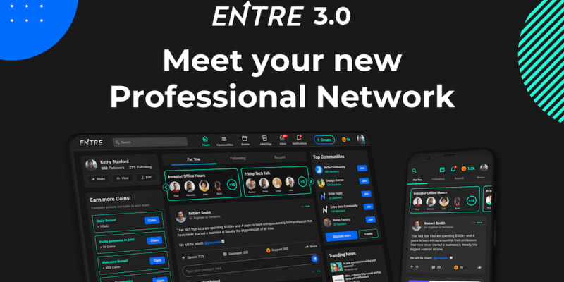 Communities is Entre's new feature within their professional networking app. It combines the best aspects and functionality of linkedin, slack and zoom to provide an all-in-one user experience for tech professionals and entrepreneurs. Grow traffic and awareness with packages starting at $1k Support is great.