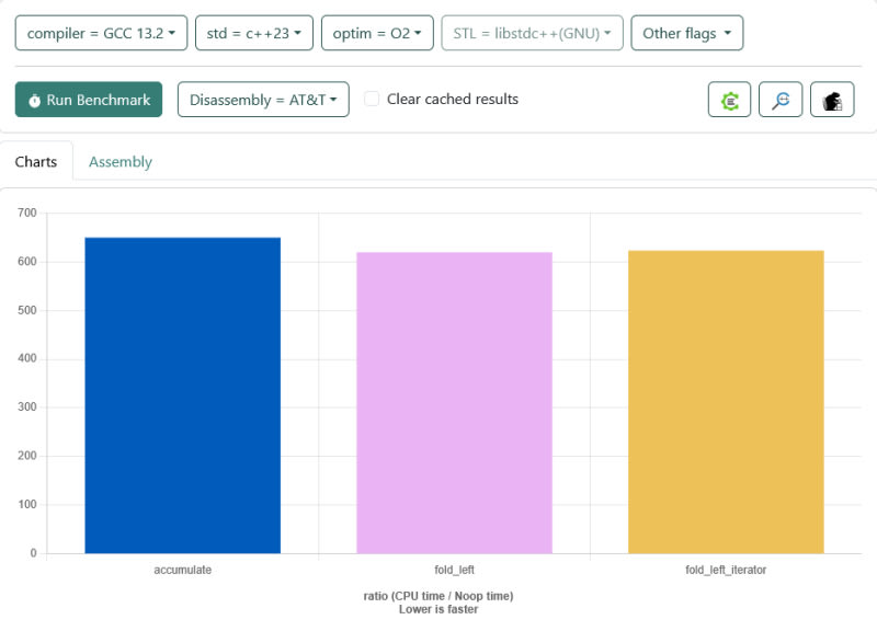 An investigation into performance differences between C++'s traditional `accumulate` and C++23's new `fold_left` algorithm reveals surprising results. Initial benchmarks showed `fold_left` being 1.1x slower, but changing optimization levels reversed this, making it 1.1x faster. The root cause was identified as an accidental