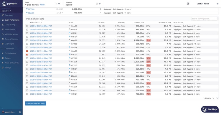 The Postgres EXPLAIN command is crucial for understanding query performance by showing the planner's reasoning. Comparing EXPLAIN plans helps identify why certain queries may perform poorly. pganalyze has developed a text-based diff interface for easier comparison of query plans, focusing on plan structure and execution metrics
