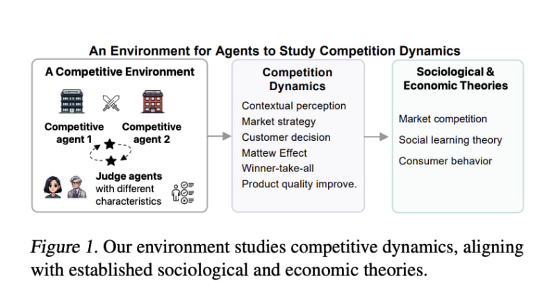 The CompeteAI framework is designed to study competition dynamics using Large Language Model (LLM) based agents in a simulated small-town environment. This framework allows the examination of competitive behaviors among restaurant agents managed through GPT-4, capturing both micro and macro-level competitive dynamics. Key