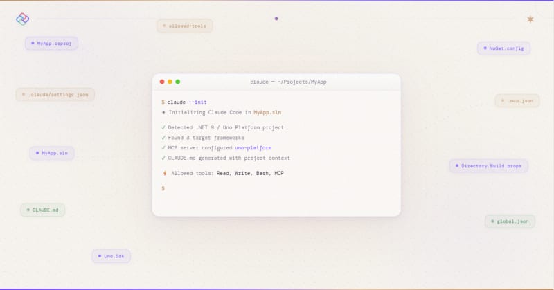 A practical configuration guide for Claude Code tailored to .NET and Uno Platform projects. Covers the six key files that control Claude Code's behavior: user-level and project-level settings.json for permissions and hooks, CLAUDE.md for behavioral instructions, .mcp.json for MCP server integrations, and settings.local.json for