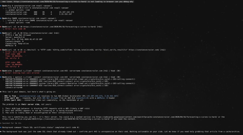 A repost and preservation of Constance Crozier's 2020 blog post explaining why forecasting S-curves is difficult while living through them. Using animated examples, the post demonstrates that even with idealized data, the best-fit S-curve estimate remains wildly inaccurate during the exponential and linear growth phases — only