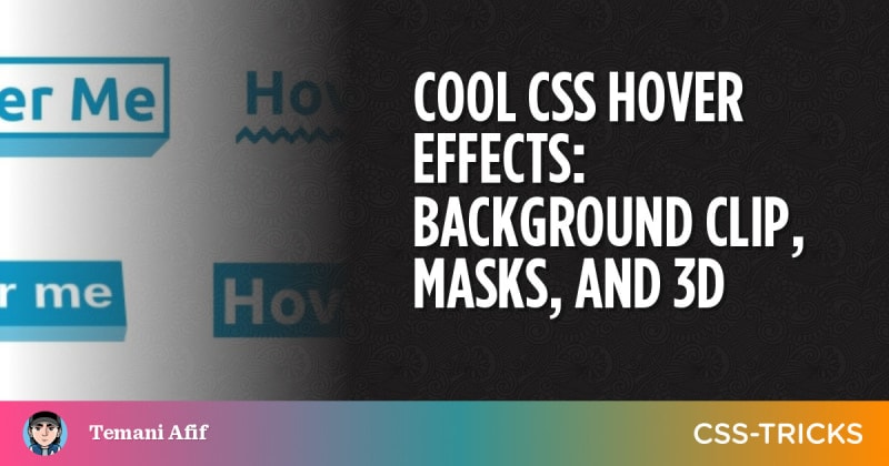 We’ve walked through a series of posts about interesting approaches to CSS hover effects. In this article, we will build off those two articles to create even more complex CSS hover animations. We’re talking about background clipping, CSS masks, and even getting our feet wet with 3D perspectives.