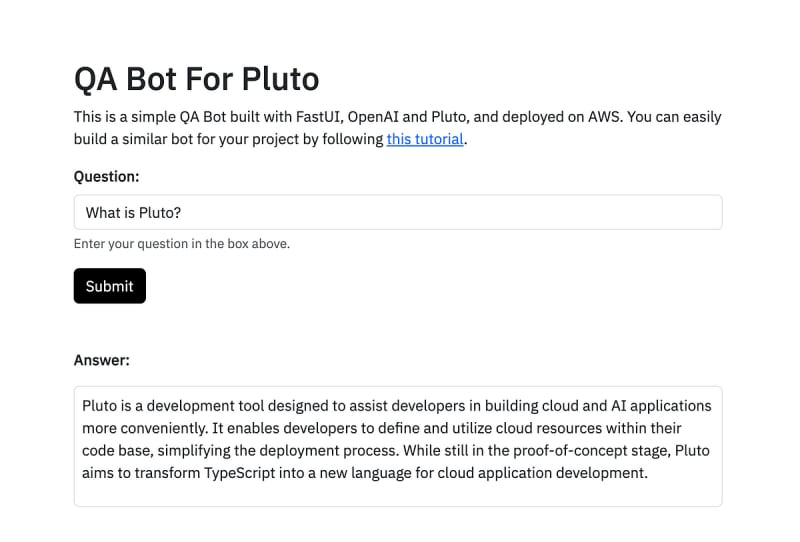 Learn how to build a document QA assistant for your project in just 5 minutes using LangChain, FastUI, and Pluto. Deploy it on AWS with one click.