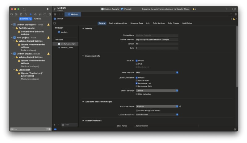 The PodSpec is the Specification about the pod you are creating. It includes details about where the source should be fetched from, what files to use, the build settings to apply, and other general metadata such as its name, version, and description. We are going to use two configurations, the Debug and the Release.