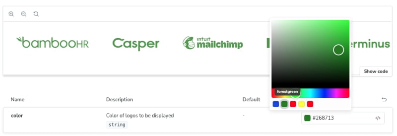 Learn how to create a custom color control in Storybook to change the color of elements in a component using colors from a theme.