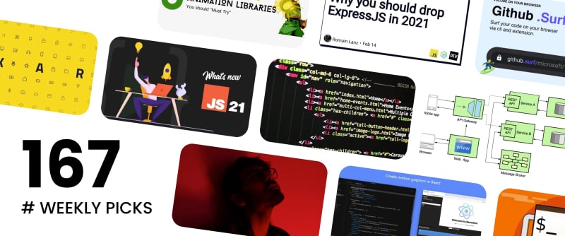 8 JavaScript Animation Libraries You should "MUST TRY"Why you should drop ExpressJS in 2021GitHub Surf - Open repositories in a VSCode environment in your browserA perfectly rounded icon library made for developersWhat's new in Javascript 21 - ES1210 CSS Hacks Every Web Developer Should KnowMicroservices ArchitectureThe Dark Side of Becoming a Self-Taught DeveloperCreate videos programmatically in React3 Comments