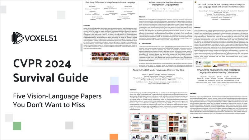 CVPR 2024 Survival Guide: Five Vision-Language Papers You Don’t Want to MissDescribing Differences in Image Sets with Natural LanguageA Closer Look at the Few-Shot Adaptation of Large Vision-Language ModelsLet’s Think Outside the Box: Exploring Leap-of-Thought in Large Language Models with Creative Humor GenerationAlpha-CLIP: A CLIP Model Focusing on Wherever You WantmPLUG-Owl2: Revolutionizing Multi-modal Large Language Model with Modality CollaborationThe deep learning community’s commitment to open science is truly remarkable.Visit Voxel51 at CVPR 2024!Sort: