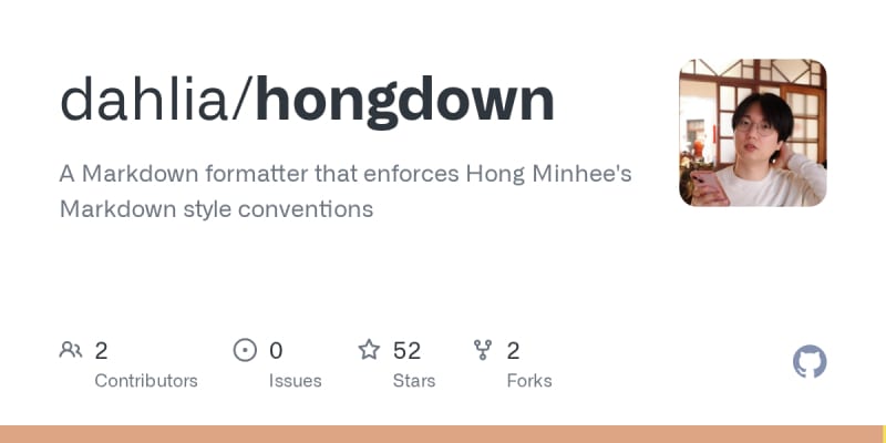 Hongdown is a Markdown formatter written in Rust that enforces a specific style convention. It supports multiple installation methods (npm, Cargo, mise, pre-built binaries) and offers CLI commands for formatting files in-place, checking formatting, showing diffs, and reading from stdin. The tool includes disable directives via