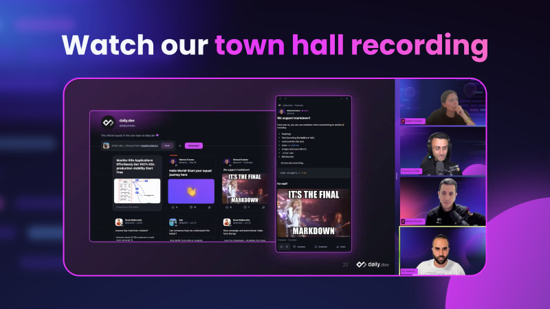 Recap of daily.dev's first town hall where we revealed project updates, shared our backstory, and hosted an interactive AMA with our community of developers.