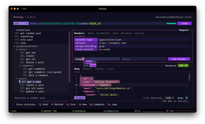 Posting is a terminal-based HTTP client designed for efficient keyboard-centric interactions. It stores requests locally in YAML files, ensuring easy version control. Key features include 'jump mode' navigation, environment/variable management with autocompletion, various themes, and a command palette. Installation requires