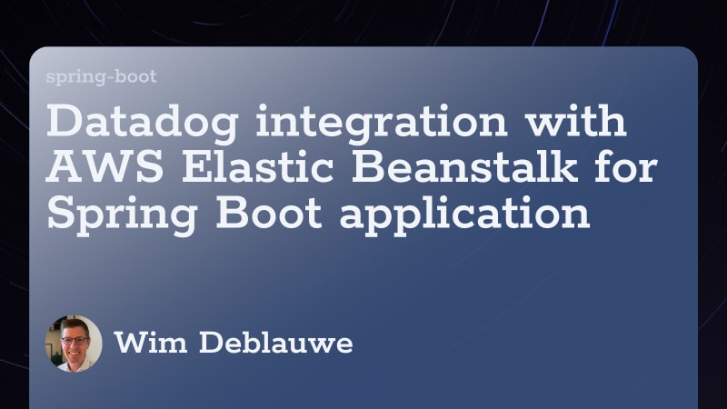 A guide for integrating Datadog agent v6 with AWS Elastic Beanstalk for a Spring Boot application. Covers configuring the .ebextensions folder for deployment and setting up Logback with LogstashEncoder to ship JSON-formatted logs to Datadog, with separate profiles for development and production environments.