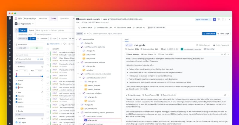 Send OTel GenAI spans to DatadogUnify analysis of prompts, agents, and tools across providersStandardize on OTel for GenAI with DatadogSort: