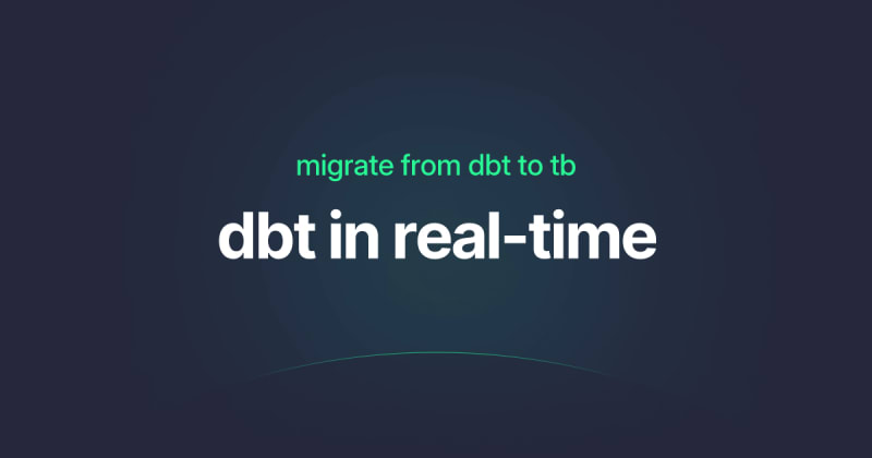 Why bother migrating from dbt to tb?Mapping dbt concepts to Tinybird: A new way of thinkingStep-by-step migration strategyPotential pitfallsFinal thoughtsSort: