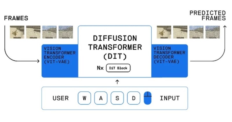 Oasis is a new AI-driven model introduced by Decart.ai and Etched.ai that generates an interactive, real-time open-world experience inspired by Minecraft. The AI model uses millions of hours of Minecraft gameplay data to create dynamic environments without underlying hard-coded logic. It employs next-frame prediction and an