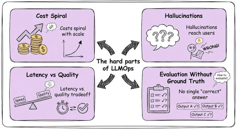 Part 4 of an LLMOps course covers decoding strategies, generation parameters, and the lifecycle of LLM-based applications with hands-on code demos. The course addresses production challenges like cost management, handling hallucinations, optimizing latency, and building evaluation systems. Unlike traditional MLOps focused on
