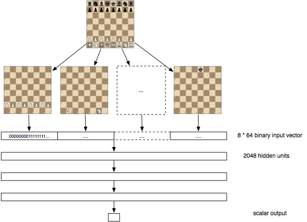 A developer combines Theano and deep learning to build a chess AI called Deep Pink. The approach trains a 3-layer neural network (2048 units wide, ~10M parameters) on 100M chess games from FICS, learning a position evaluation function purely from game data — no chess rules encoded explicitly. The model uses triplet-based