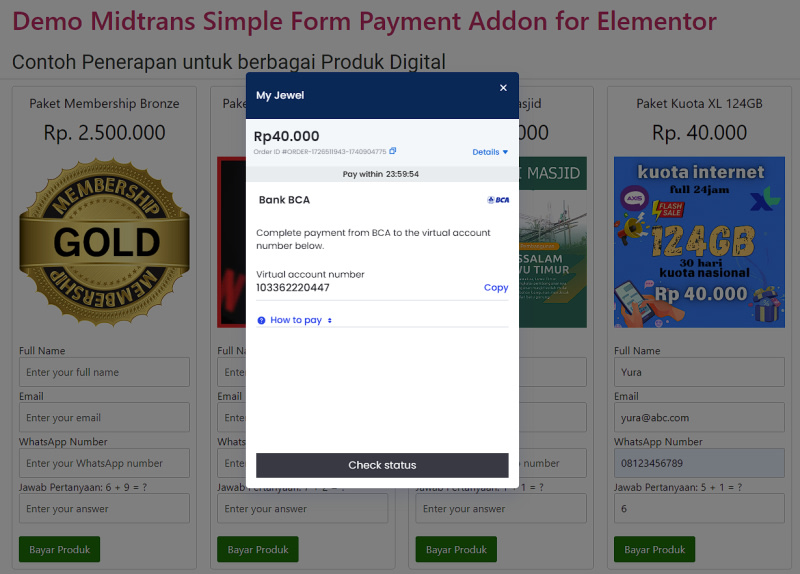 Demo Midtrans Simple Form Payment Addon for Elementor