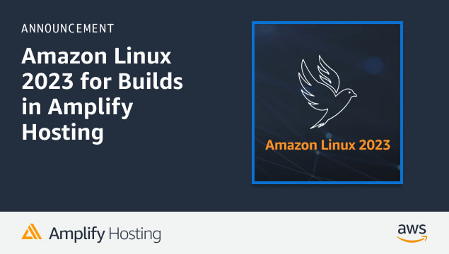 Learn how to upgrade your build image from Amazon Linux 2 to Amazon Linux 2023 on Amplify Hosting and deploy SSR or static apps built with Next.js, Nuxt, and more using Amplify Hosting.