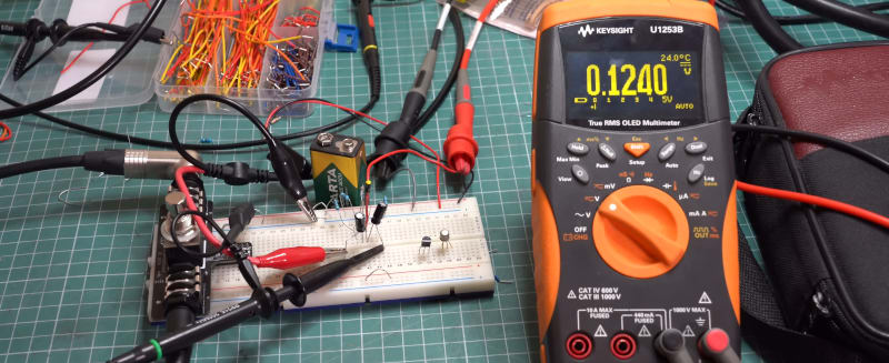 A walkthrough of designing a common emitter amplifier using bipolar junction transistors. The design process starts with input parameters like gain, collector voltage, and collector current, then uses simplified assumptions (Ic=Ie, negligible base current) to calculate component values. The tutorial covers the mathematical