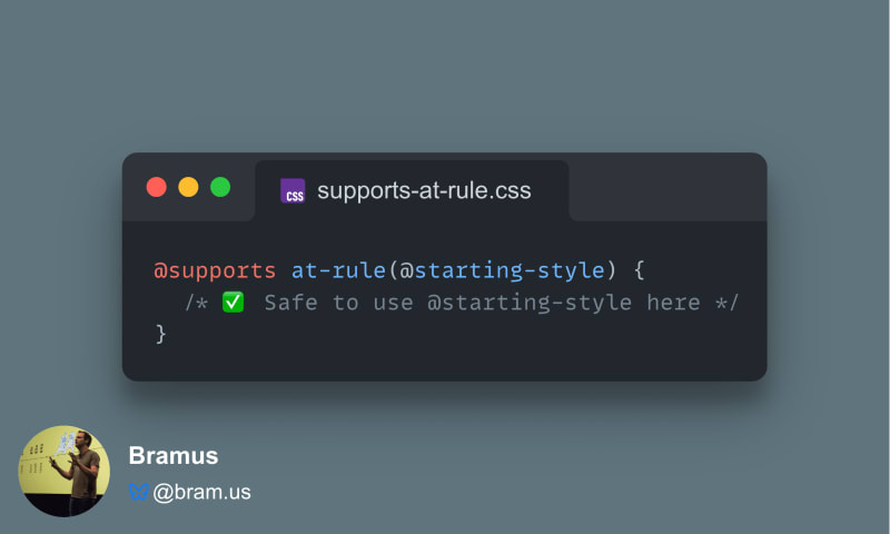 CSS is gaining a new feature detection capability via `@supports at-rule(@keyword)`, shipping in Chromium 148. It lets developers check whether a browser supports a specific CSS at-rule (like `@starting-style` or `@view-transition`) before using it. The feature can also be used in `@import` supports conditions. Notably, the