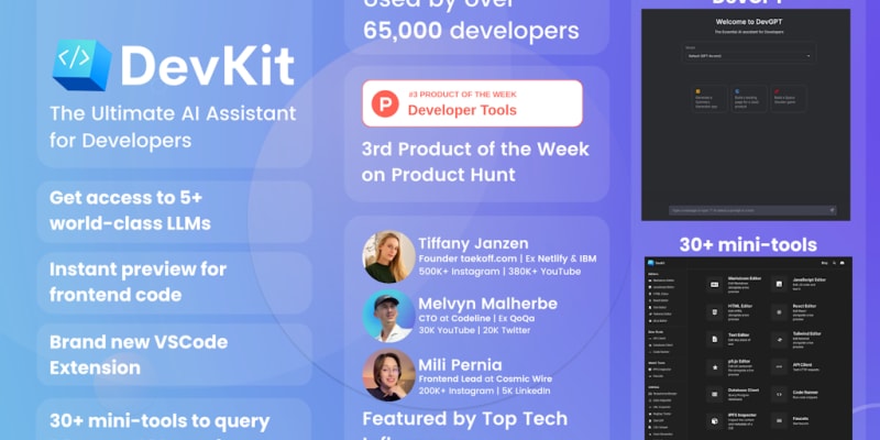 DevKit 3.0 includes a new VSCode extension and incorporates the latest large language models (LLMs). It was highly rated and first launched in January 2022, with its new features being highlighted in October 2024.