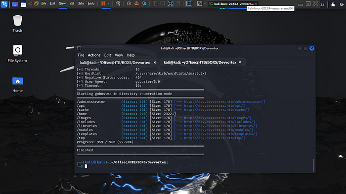 This post provides a walkthrough for the Devvortex Hackthebox machine. It covers recon, subdomains enumeration, exploitation of an old version of Joomla, privilege escalation, and the exploitation of a vulnerability in apport-cli.