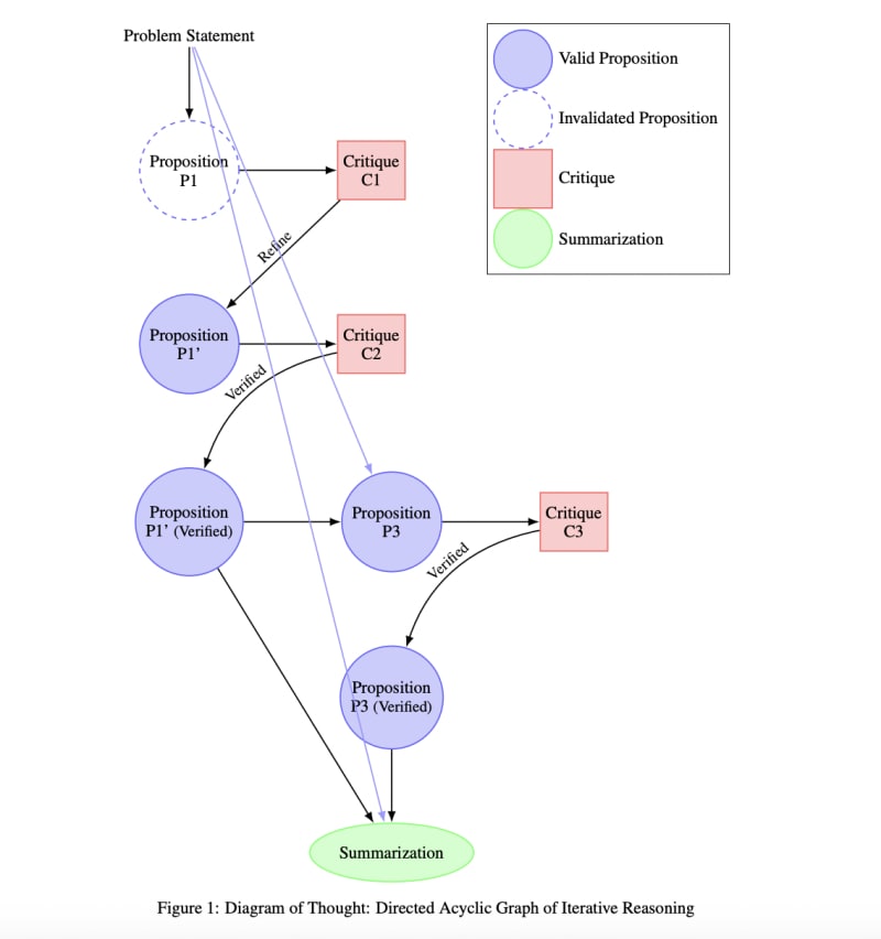 The Diagram of Thought (DoT) framework models iterative reasoning in large language models (LLMs) by constructing a directed acyclic graph (DAG) within a single model. Developed by researchers from Tsinghua University and Shanghai Artificial Intelligence Laboratory, DoT enhances problem-solving by integrating propositions,