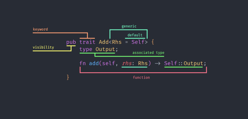 The Add trait is one of the most interesting traits in Rust. Dissecting Rust Traits to Learn Their Secrets is an incredible example to learn how the tools of the traits can be pieced together to offer an amazing flexibility with a perfectly tied functionality.