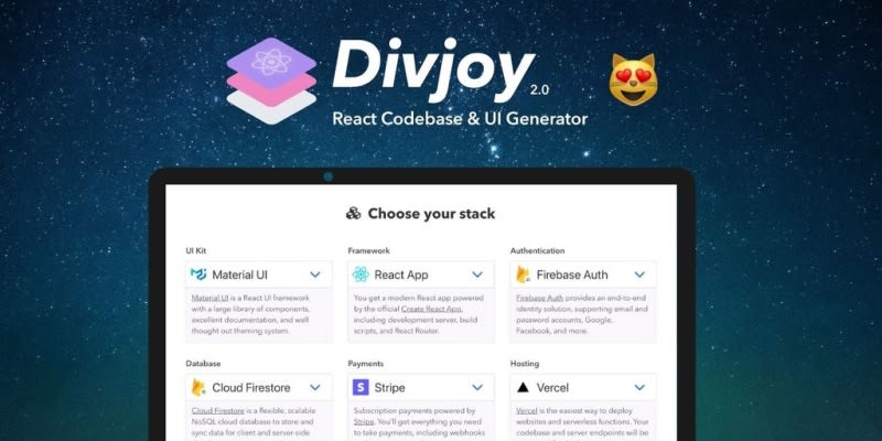 Divjoy makes it ridiculously easy to start your next React project. Pick all the things you need in your codebase (UI kit, auth, database, payments, etc), choose a beautiful template, then export a complete React codebase. Everything just works. Embed Collect