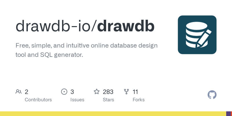 DrawDB is a free online database design tool and SQL generator. It allows users to build diagrams, export SQL scripts, and customize the editor without creating an account.
