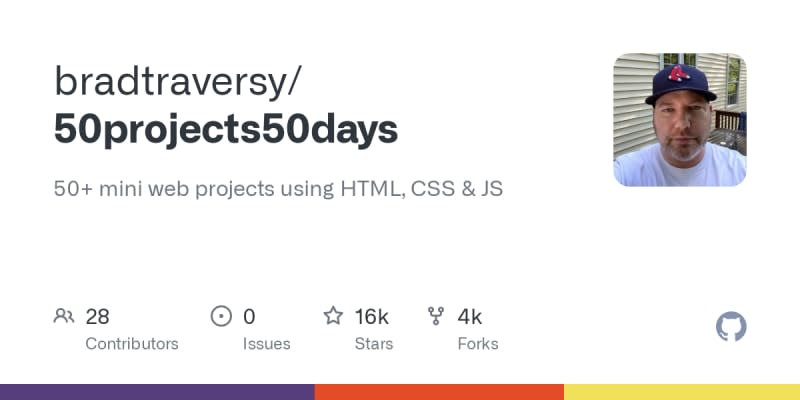 50 Projects in 50 Days - HTML/CSS and JavaScript and JavaScript. This is the main repository for all of the projects in the course. We are only accepting pull requests and looking at issues for bug fixes so that the code stays inline. All of these projects are part of the course and are available for download.