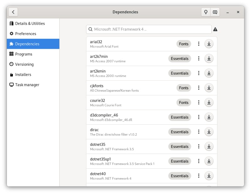 Bottles introduces a new way to handle Windows prefixes using environments. Environments are a combination of ready-to-use settings, libraries and dependencies.Choose between Gaming and Software environment based on the type of software you want to start. Empowered by environments you can create your own applications.