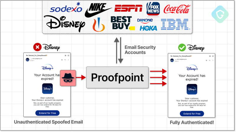 Guardio Labs discovered a phishing campaign exploiting Proofpoint’s email protection to send millions of perfectly spoofed emails from major brands like Disney, IBM, and Nike. The attack bypassed security by leveraging authenticated SPF and DKIM signatures, deceiving recipients and stealing sensitive information. The campaign