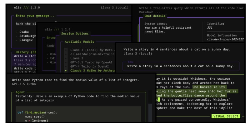 Elia is an open source terminal UI application that allows users to interact with large language models directly from their terminal. It offers a fast and easy-to-use solution, supporting both proprietary and local models.