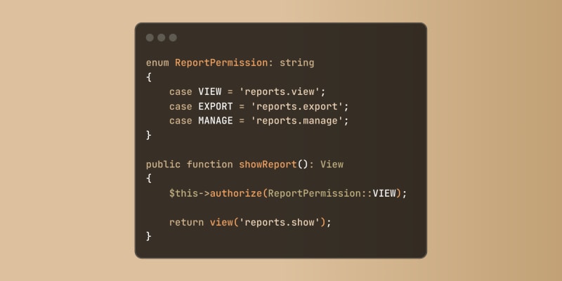 Enhance your Laravel application's security model with backed enum support for permissions. This feature provides a type-safe approach to authorization checks while improving code readability and maintainability. The implementation simplifies the process of permission checks, making it more intuitive and manageable across complex systems.