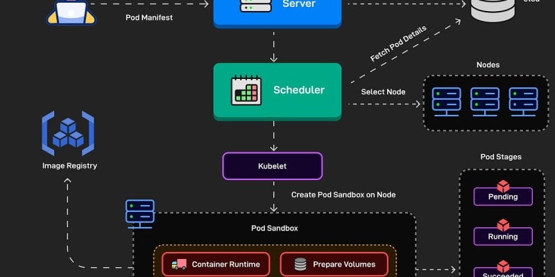 Covers the complete lifecycle of Kubernetes pods from creation to termination, including API server submission, scheduling, kubelet preparation, container states, and cleanup. Also explores CI/CD pipeline automation, open-source RAG stack components, software versioning strategies (SemVer, CalVer, Sequential, API), and the