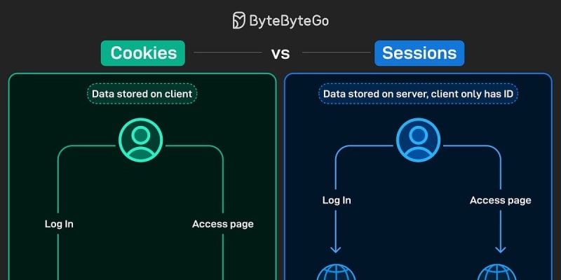 Explores the fundamental differences between cookies and sessions for user authentication in web applications. Cookies store data directly on the client side and are simpler to implement but less secure, while sessions store data server-side with only a session ID on the client, offering better security at the cost of