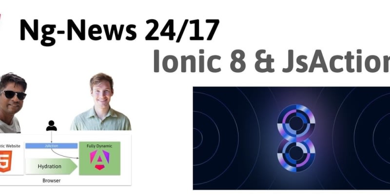 Ionic released version 8 with major improvements in accessibility. JSAction is a library that catches and holds DOM events until Angular is ready. Jake Archibald wrote an article explaining the difference between HTML attributes and properties.