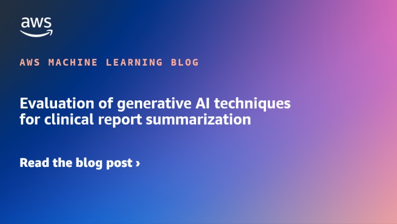 This post evaluates generative AI techniques, such as zero-shot and few-shot prompting, and the Retrieval Augmented Generation (RAG) prompt engineering technique for clinical report summarization. The evaluation results show that the RAG approach performs the best among the techniques. The post also provides an overview of
