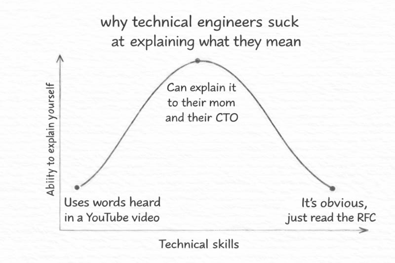 Technical engineers and managers often struggle to communicate effectively because they fail to compress complex ideas into digestible messages. Using the metaphor of data compression, the post explains that all communication involves lossy compression of rich inner experiences into simplified language. Two key skills are