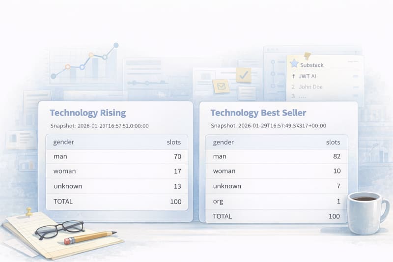 A former developer returns to coding after 15+ years to build a gender diversity tracker for Substack's Technology leaderboards. The journey involves learning modern tools (VS Code, GitHub, Chrome extensions) with AI assistance (ChatGPT, Copilot), pivoting from UI scraping to API calls, and ultimately settling on a