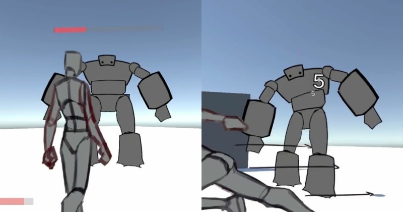 A game developer demonstrates a technique for making 2D sprite-based enemies appear three-dimensional in a third-person 2.5D action game. The method involves moving 2D sprite pieces in sync with the character's view, creating a convincing illusion of 3D enemies that players can rotate around and dodge attacks from, despite the enemies being flat sprites.