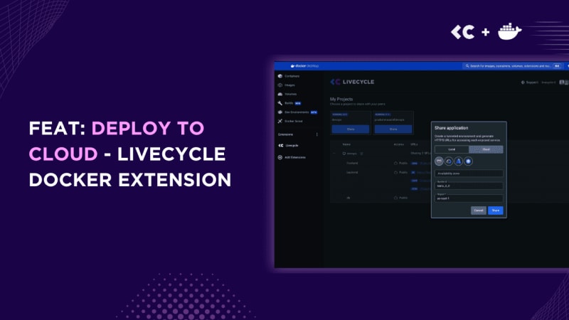Livecycle has introduced the Livecycle Docker Extension, which enables developers to share local development environments for collaboration and feedback. The extension now includes a 'Deploy to Cloud' feature that allows users to deploy applications on AWS, GCP, Azure, or Kubernetes for long-term review and feedback.