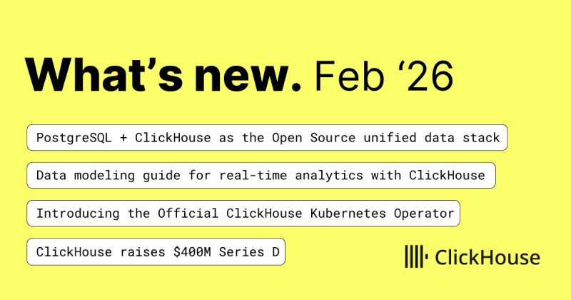 Featured community member: Ino de Bruijn #Upcoming events #26.1 release #ClickHouse raises $400M Series D, acquires Langfuse, and launches Postgres #Provable Completeness: Guaranteeing Zero Data Loss in Trade Collection from Crypto Exchanges #Introducing the Official ClickHouse Kubernetes Operator: Seamless Analytics at Scale #AI-Generated analytics without wrecking your cluster #Data modeling guide for real-time analytics with ClickHouse #PostgreSQL + ClickHouse as the Open Source unified data stack #Quick reads #Sort: