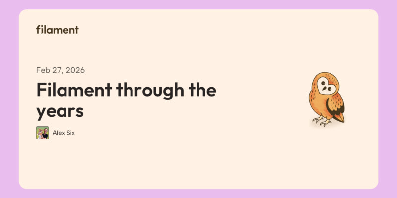 # Filament v1 - The Admin Panel (March 2021)# Filament v2 - Laying the foundations for Filament (December 2021)# Filament v3 - v5 - Filament’s modern era# What’s next?Sort: