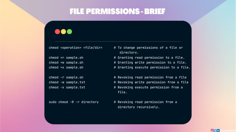 The Linux Terminal possesses some superpowers when it comes to handling file permissions. You can grant or revoke permissions for every file and directory from your Terminal. Read, Write, and Execute are the three actions you can perform on a file. A file is said to be executable if it has a sequence of instructions to achieve something.