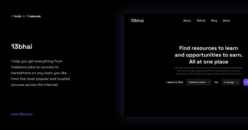 13bhai helps you get everything from freelance jobs to courses to hackathons on any topic you like from the most popular and trusted sources across the internet. Just select what you want to look for, hit search and there it is. You have all the information with the original links. Scraping relevant information was the biggest challenge.